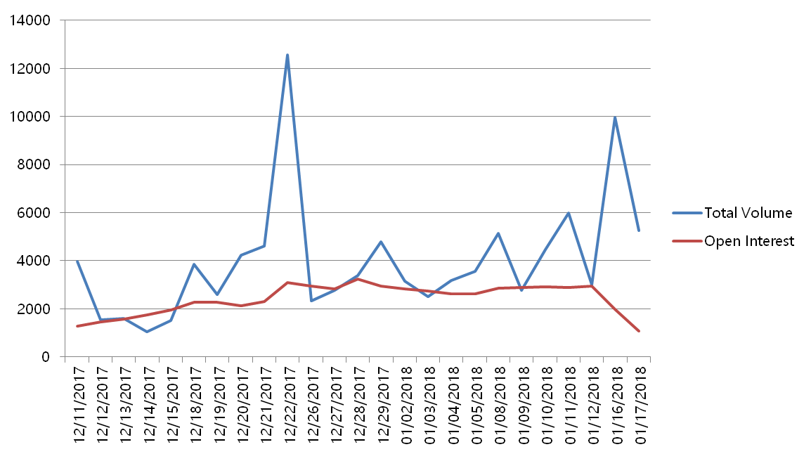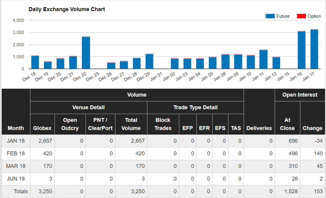 다음은 CME 홈페이지에 있는 거래량 추이와, 그리고 1월 17일 기준 미결제 약정 수 입니다.