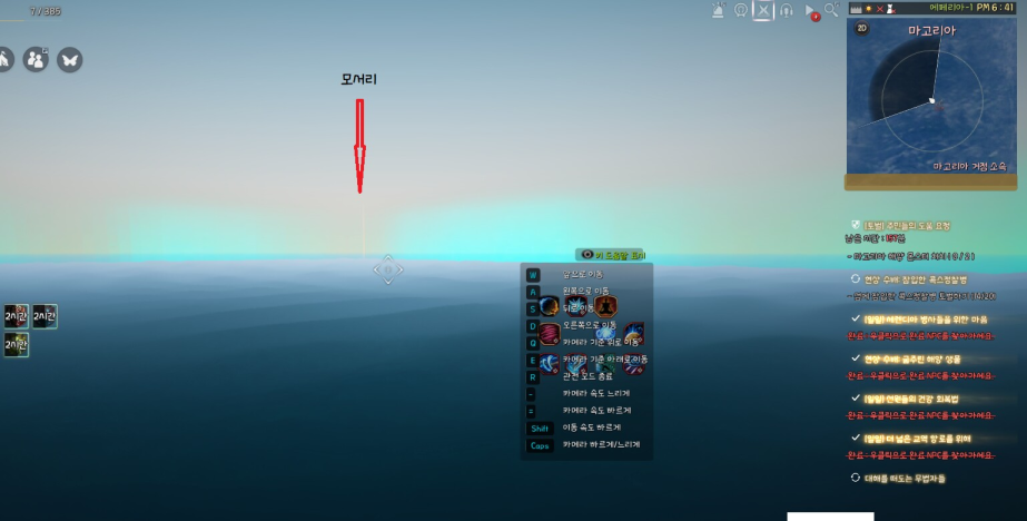 위와 같이 반투명한 하늘색 벽이 보일껍니다. 중간에 모서리 부분을 참고해주세요. 이 벽을 아리 M-월드맵 기준에서 설명드리겠습니다.