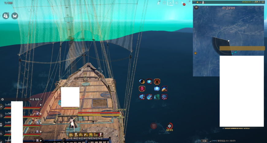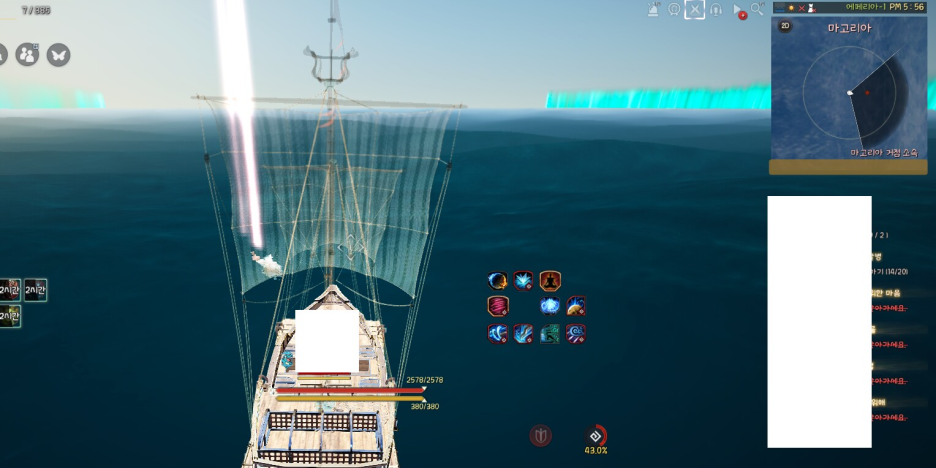 짜잔! 대양 몹이 보이네여. 윗 사진 두장은 동일한 위치에서 스샷찍었습니다. 대양에서는 미니맵 전방만 보이고 해역에서는 미니맵 360도 다 보입니다. 까마귀 상단 섬 좌측으로 안개 낀 지역에서 헤카루를 잡을 때는 잘 안보여서 이 팁을 알아두면 많이 용이합니다.