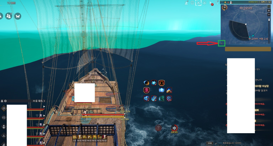 위 사진의 빨간색 화살표로 된 초록색 부분의 모서리를 좌클릭을 유지하여 넓히거나 좁힐 수 있습니다. 넓히면 미니맵에는 안보였던