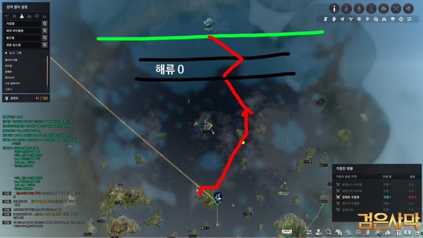 오킬루아 3시방향에 있는섬에서 12시로 올라가기시작하면 역해류가 부딪힐텐데,