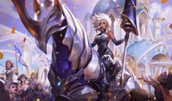 중장갑을 입은 탈주한 창기병이라는 컨셉이라는 게 공개되었을 당시 우락부락한 근육을 가진 남캐를 예상한 사람이 많았으나 의외로 여캐로 출시되었고 탈것 또한 갑옷을 말처럼 변형시켜 타고 다닌다는 매우 특이한 설정을 가진 채 등장하였다. 외형적으로는 약간 호불호가 갈리나, 워낙 이전 챔피언의 디자인이 논란이 많았기에 전체적으로 호의적인 편.