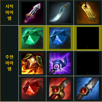 주력 견제기인 Q를 포함하여 모든 스킬에 공격력이 아닌 주문력 계수를 가지고 있기 때문에 고대유물 방패가 적절하다.