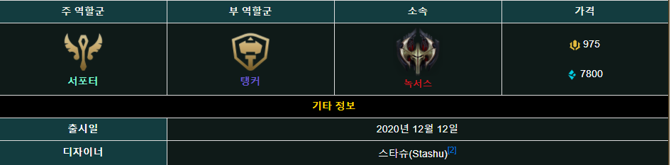 간만에 서포터 타입의 챔피언이 나오게 되었습니다!