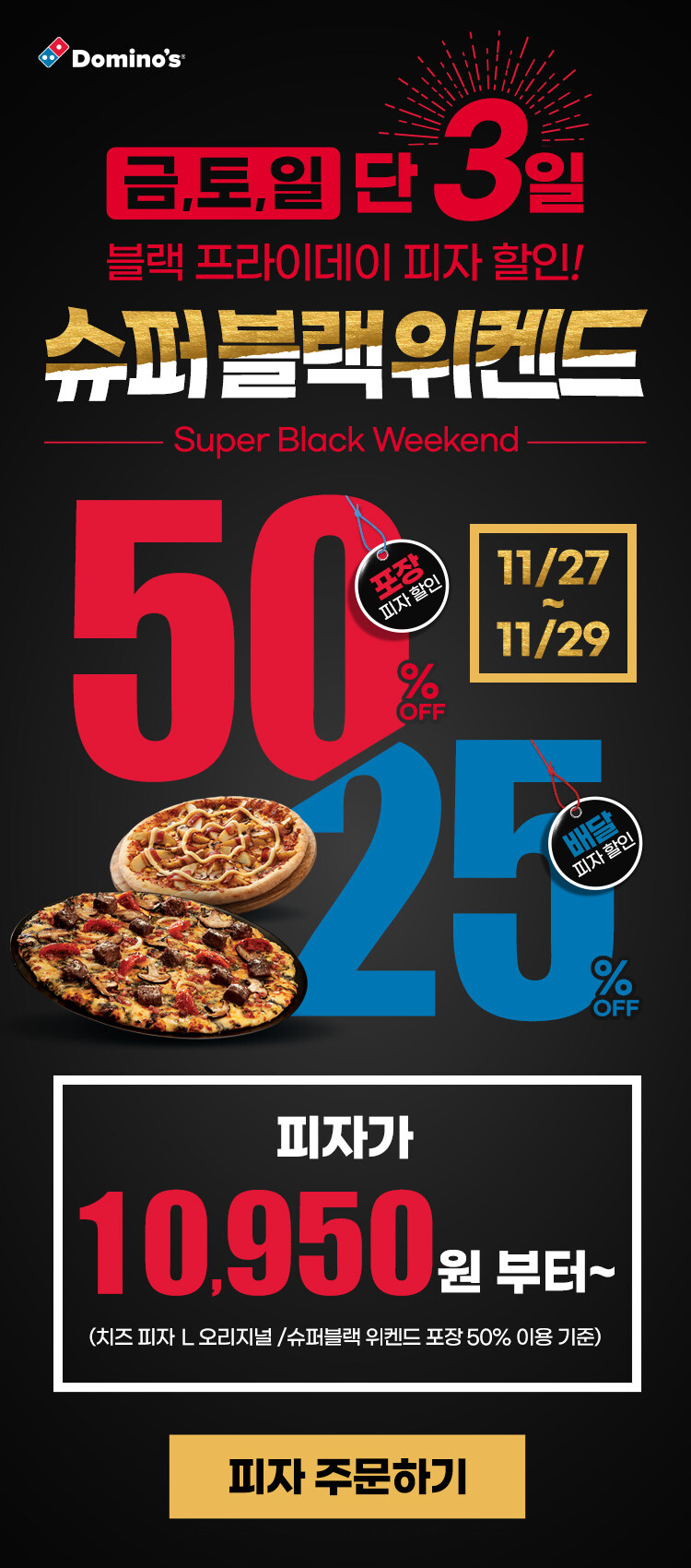 도미노피자가 블랙 프라이데이를 맞이하여 단 3일간! 할인 이벤트를 진행합니다!