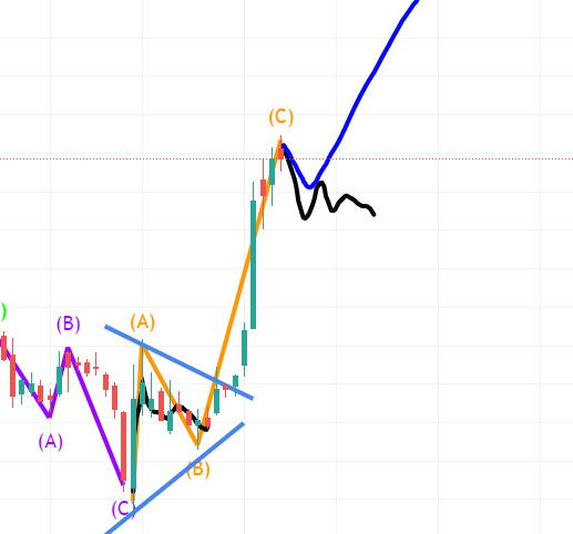 최근 차트를 보시면 큰 상승 이후 큰 조정이 이루어지고 3단계 상승이 이루어진 것을 볼 수 있습니다.