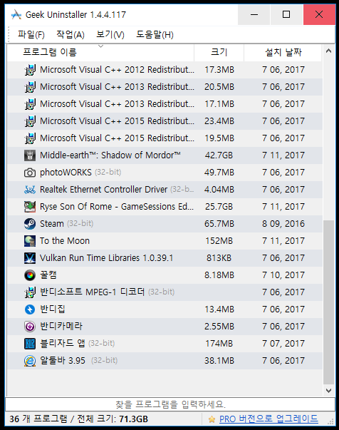 제가 프로그램 삭제용으로 쓰는 geek입니다.