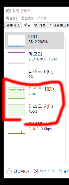 원래는 hdd ---> hdd 로 카피할 때 이렇게 점유율 높게 일을 하는데,