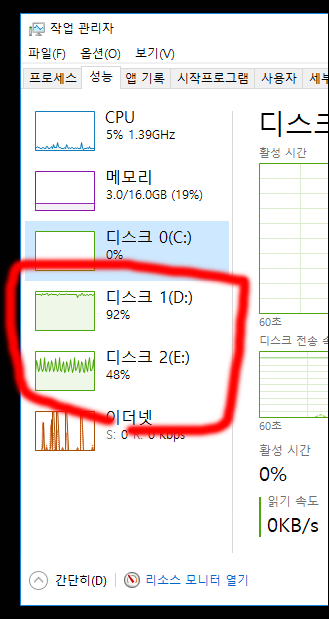 원래는 hdd ---> hdd 로 카피할 때 이렇게 점유율 높게 일을 하는데,