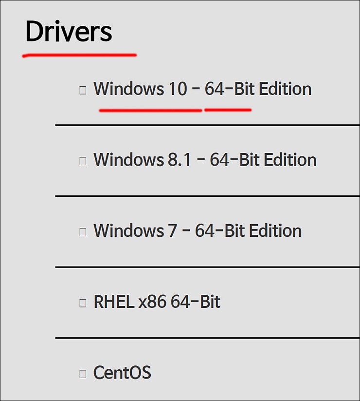 그 다음 화면은 윈도우 버전에 맞는 드라이버를 다운 받으면 됩니다.