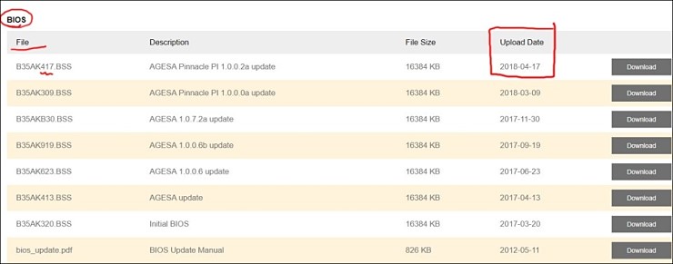 1. Biostar 홈페이지로 가서 원하는 버전의 바이오스 파일을 찾아 다운 받는다