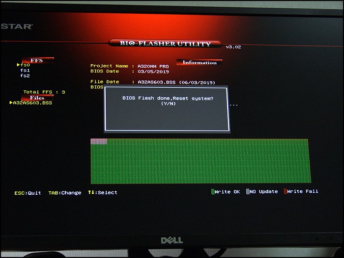 간단히 요약하면 CMOS에서 F12누르고 '엔터, 엔터, Y'를 누르면 바이오스 업데이트를 시작합니다.