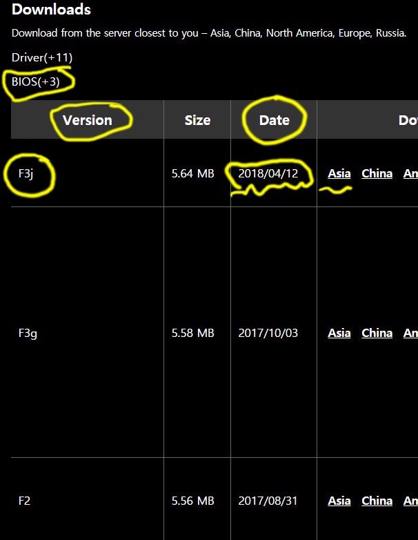 "자기 메인보드 모델명 + bios"
