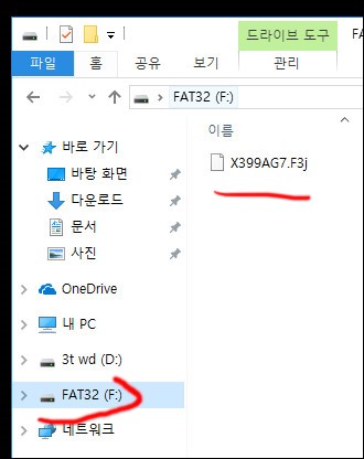 (NTFS로 포맷하면 cmos에서 인식이 안되더군요. 애즈락 보드는 NTFS도 되던데 뭐 중요한 건 아닙니다. 원칙은 FAT32)