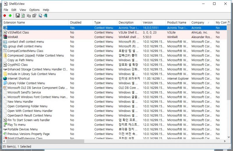 Cclener 에서 보여지지 않았기에 ShellExView 라는 유틸을 사용하는 것이 좋습니다.
