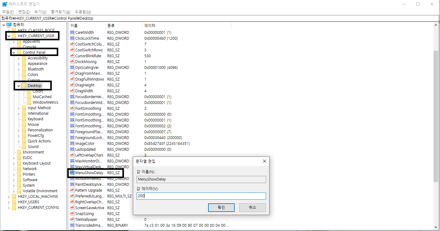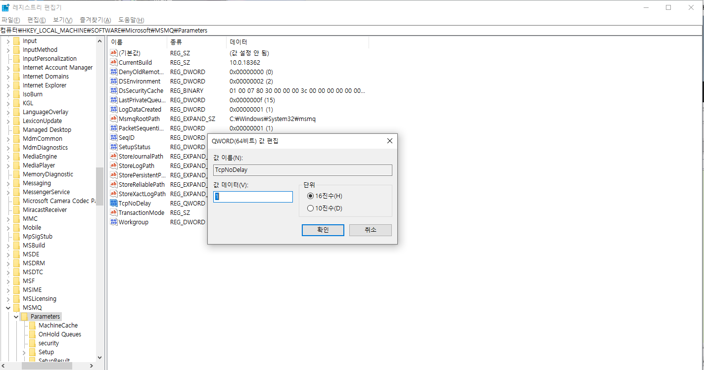 → 윈도10 32비트면 dword, 64비트면 qword 선택