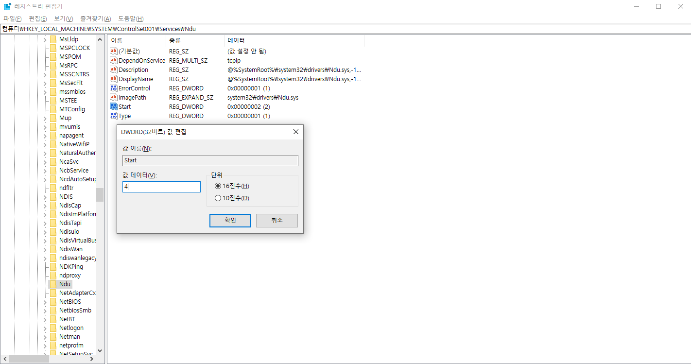NetworkThrottlingIndex가 보일 경우 해당 부분을 더블클릭